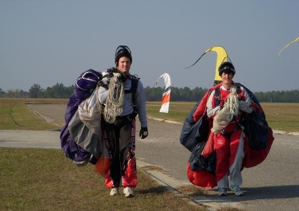Ten years later......Chris (on left) and good friend Ben exit landing zone after leisurely afternoon of skydiving at private airfield near