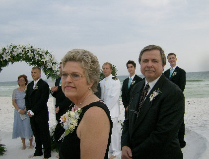 Kay and Brian observe the Bride approaching the altar