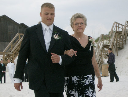 Chris escorts Mom to her seat